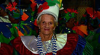 Dona Kita principal baiana, esbanjando alegria e vitalidade encantando a todos na ala que traz o conceito da reciclagem.